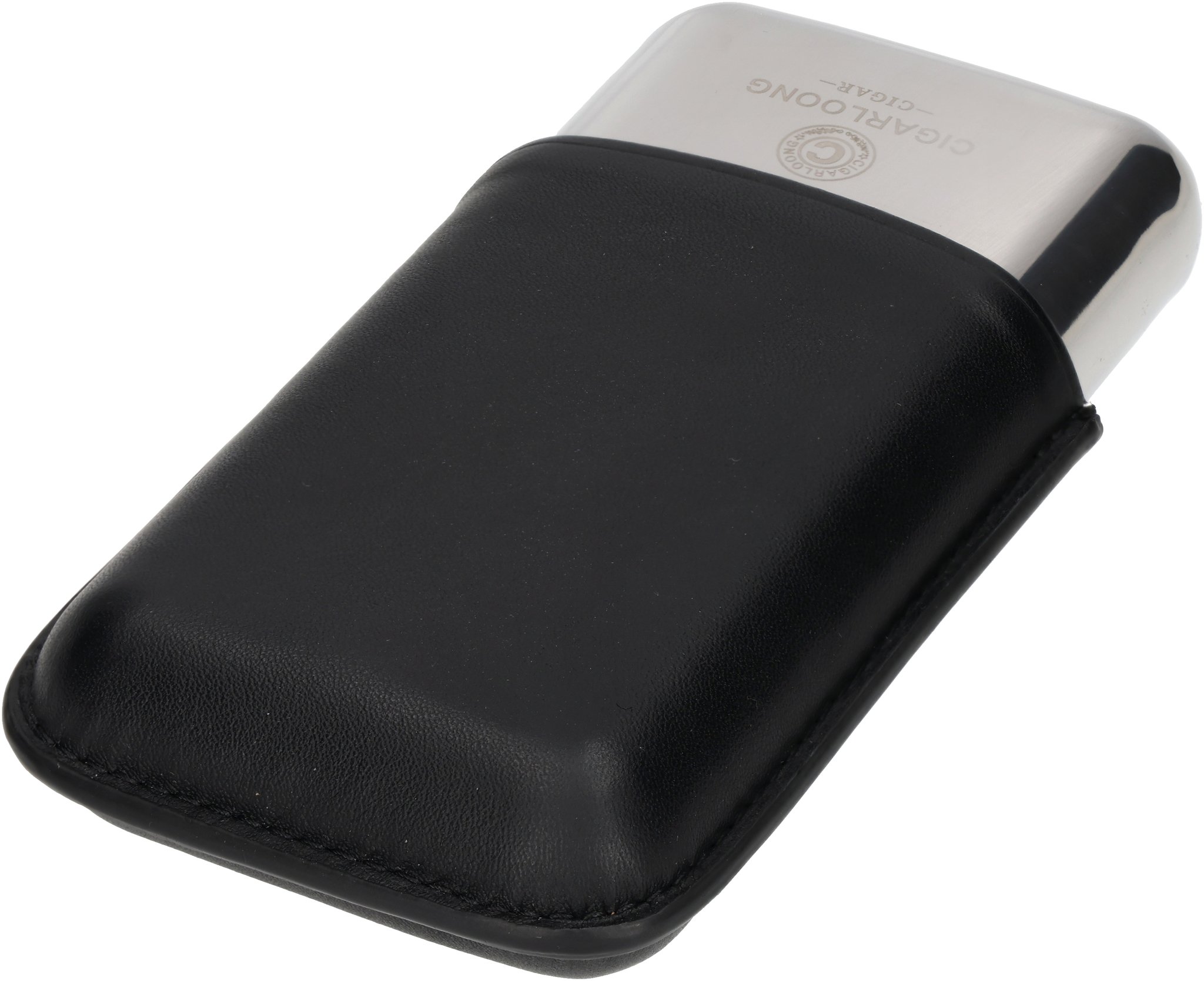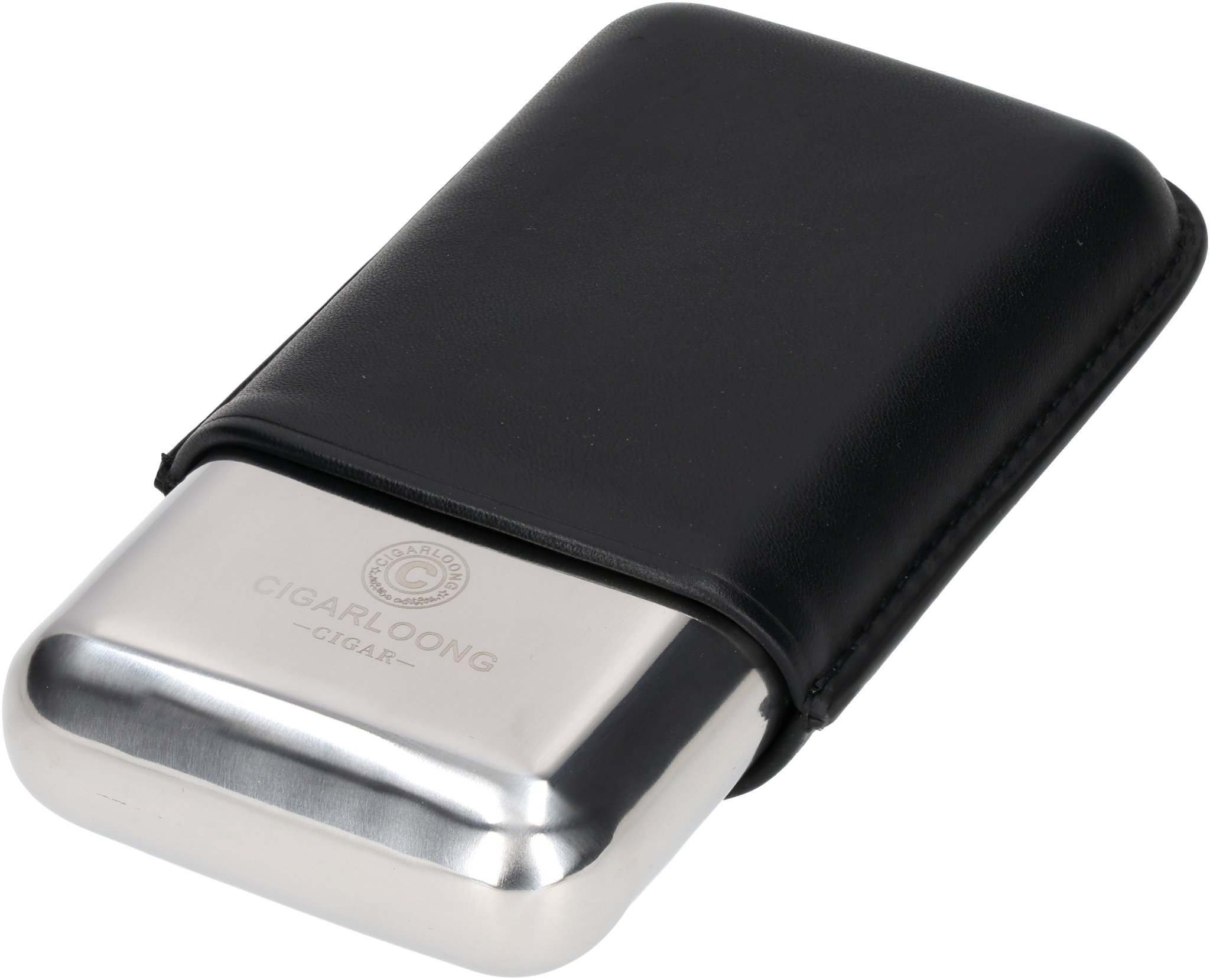 Cigarloong Etui for 3 Cigars Stainless Steel/Leather black (9510)