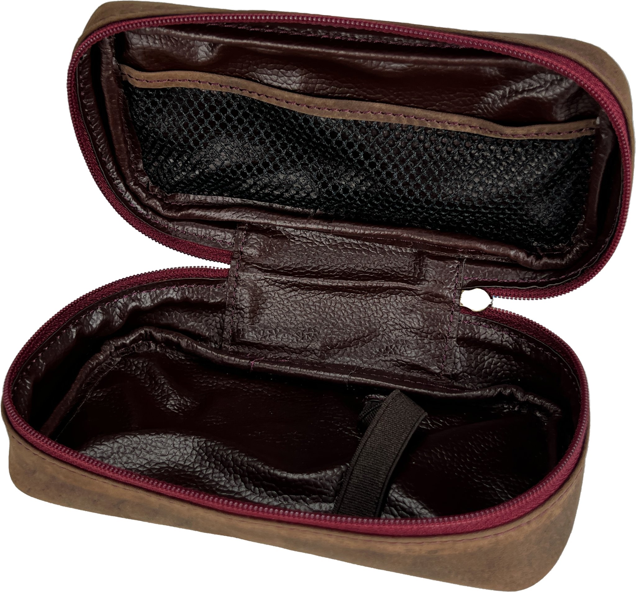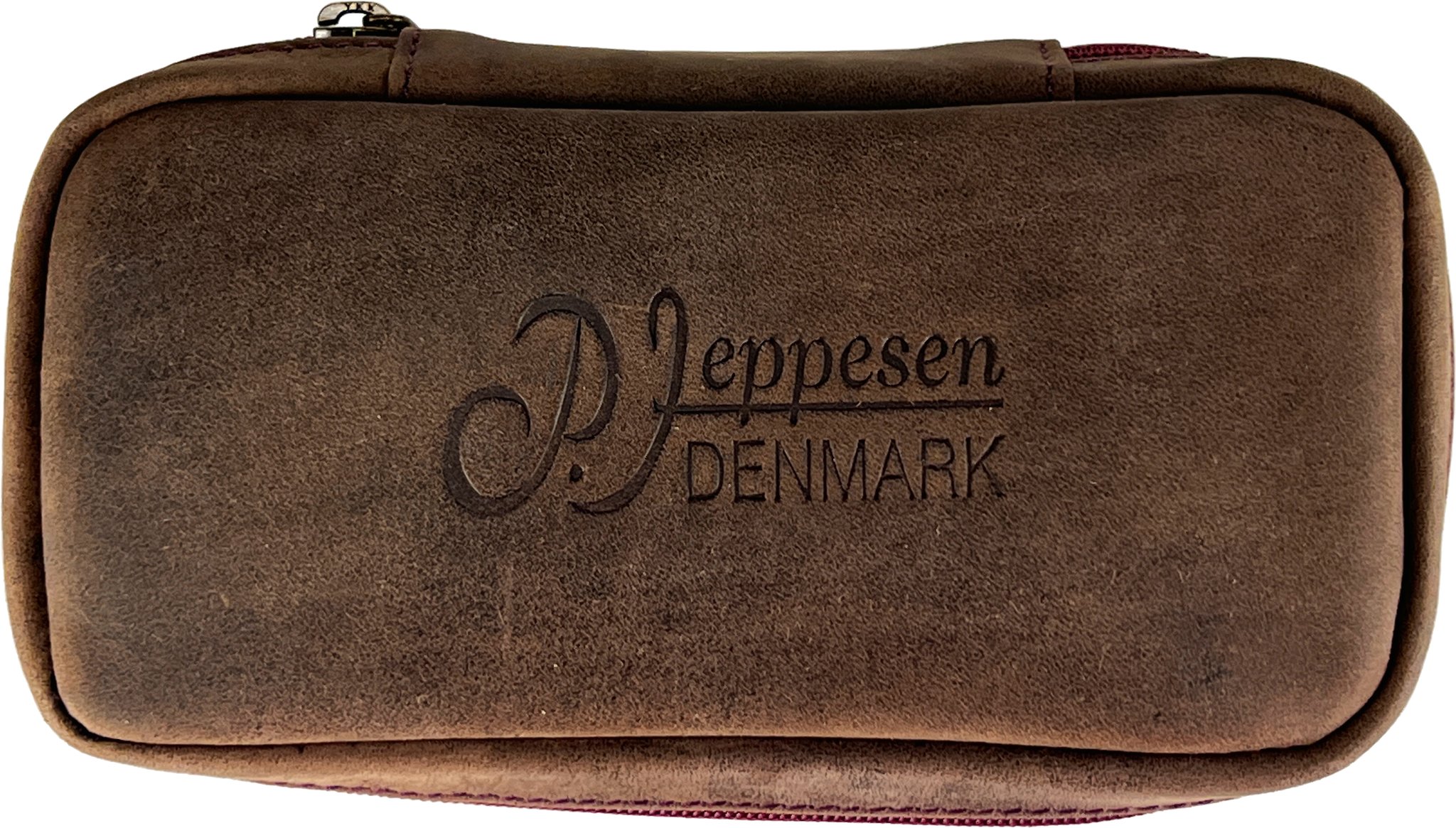Peder Jeppesen Pfeifentasche Leder dunkelbraun mit rotem Reißverschluss